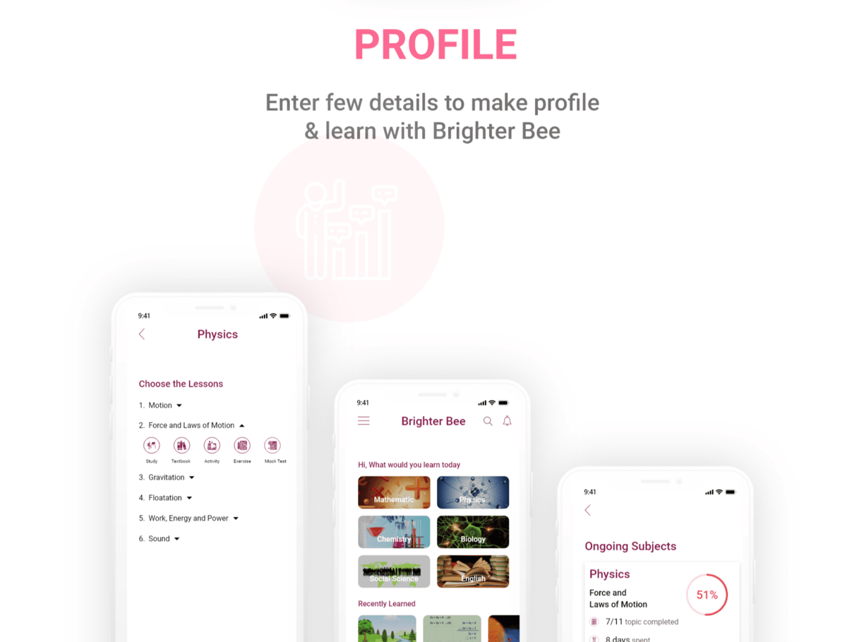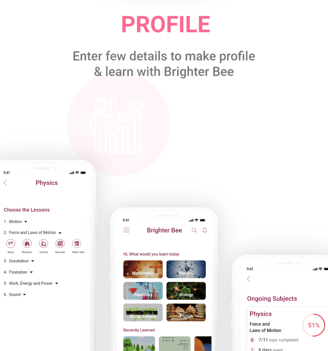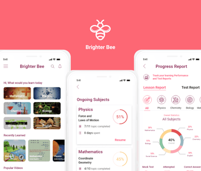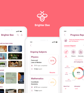 In the present time, the standard of living is high. So the parents faced many problems. They want to live a good standard of living and provide a good education to their kids. The education of kids is of prime importance. Generally, in middle-class families, both parents are working. The main challenge is balancing time between work and teaching their kids. So we designed the e- learning app Brighter Bee to solve the problem of kids and parents. The app provides an e-learning solution for the prescribed syllabus.